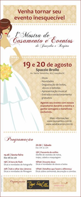 Dia 19 e 20 de agosto no Spazzio Brollo em Joaçaba- SC, acontece a 1ª Mostra de Casamento e Eventos de Joaçaba e Região.