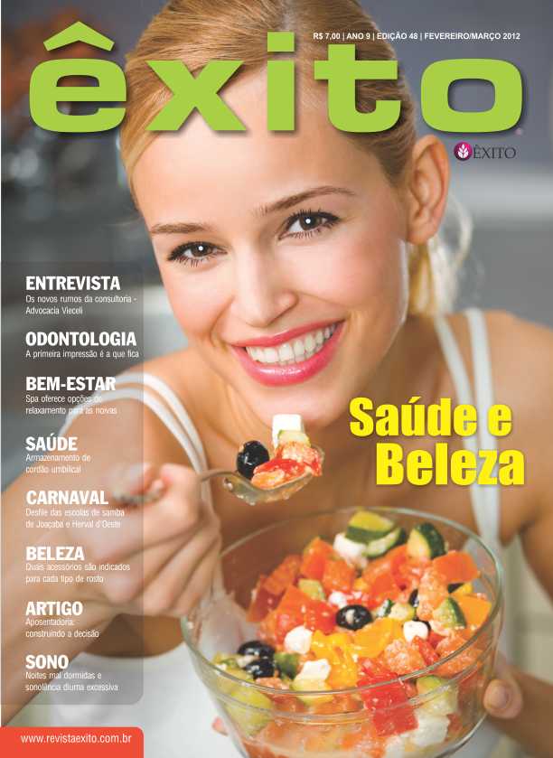 A 48ª edição da Revista Êxito já está pronta e esperando sua leitura. Confira matérias sobre como se preparar para a aposentadoria, os benefícios do cacau, o lançamento da Mercomóveis 2012, a ampliação de ações do SUS, moda, Miss Mundo Santa Catarina, agricultura, ação social e muitas outras reportagens de interesse regional.