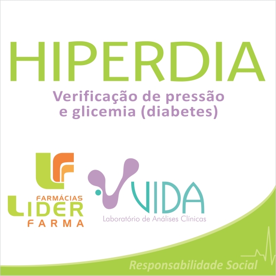Pensando também na saúde da população e em busca de um maior bem-estar, as Farmácias Lider Farma e o Laboratório Vida estão promovendo este ano novamente o já tradicional HIPERDIA, um dia inteiramente dedicado à aferição de pressão arterial, taxas de glicemia e cálculos de IMC (Índice de Massa Corpórea), além de esclarecimentos sobre as doenças que tanto acometem a população. O Hiperdia acontecerá no largo da Estação Ferroviária no dia 14 de abril, das 9 às 15 horas.