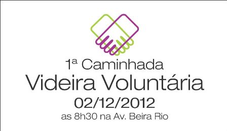 Está chegando. Dia 02 de dezembro de 2012 tem a 1ª Caminhada Videira Voluntária pelas principais ruas do centro de Videira. Com saída as 8h30 da Avenida Beira Rio a Caminhada tem como objetivo celebrar o dia Internacional do Voluntariado, incentivar e valorizar os voluntários videirenses.